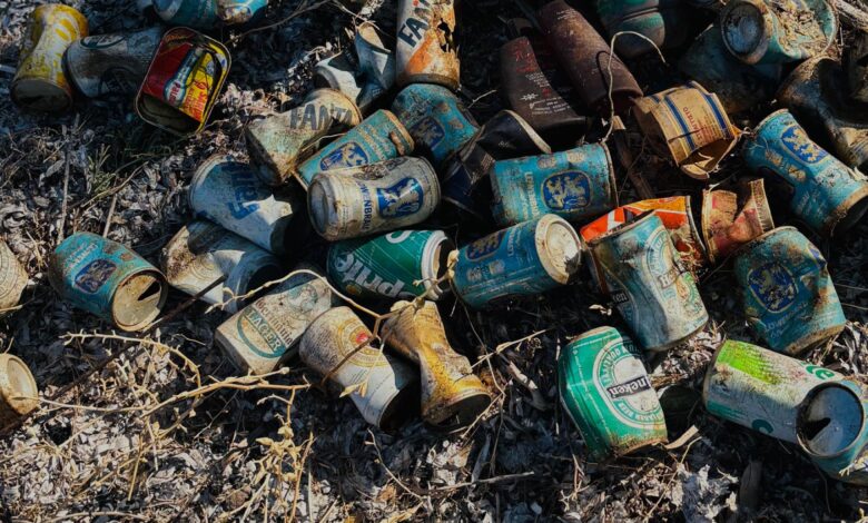 Κουτάκια αναψυκτικών και μπίρας με χρονολογίες από το μακρινό 1986 έως και το 1991, δοχεία κονσέρβας, πλαστικά μπουκάλια, συσκευασίες τροφίμων, παντόφλες, σπασμένα είδη κάμπινγκ, μπιτόνια με λάδια σκαφών, μέχρι αναπτήρες και γυάλινα μπουκάλια.