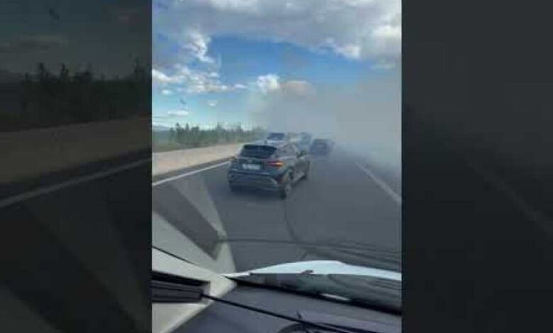 Ένας αστυνομικός παρέπεμψε όλα τα οχήματα στην αριστερή λωρίδα με αποτέλεσμα τα δύο αυτοκίνητα να συγκρουστούν και να ντεραπάρει ένα μαύρο τζιπ.