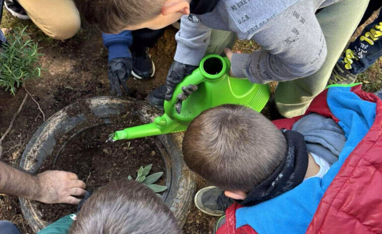 Μια συμβολική φύτευση φυτών με στόχο την ευαισθητοποίηση των μαθητών για το περιβάλλον και την καλλιέργεια οικολογικής συνείδησης