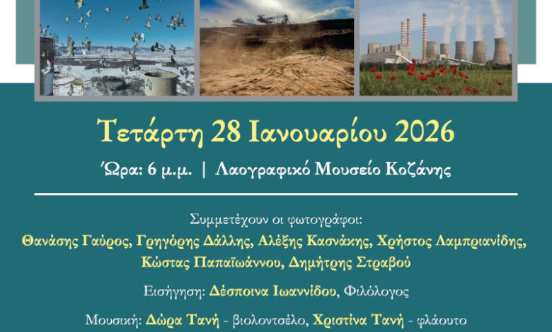 Μια ξεχωριστή φωτογραφική έκθεση αφιερωμένη στη Μετάβαση και στη μεταλιγνιτική ταυτότητα της Δυτικής Μακεδονίας θα φιλοξενηθεί την Τετάρτη 28 Ιανουαρίου 2026, στις 18:00, στο Λαογραφικό Μουσείο Κοζάνης, με τίτλο «Εικόνες ενός τόπου που αλλάζει».