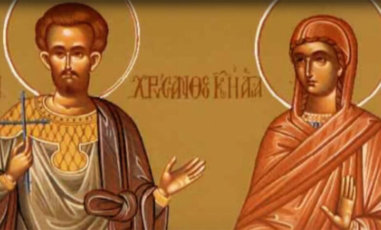 Σήμερα Πέμπτη, 19 Μαρτίου, σύμφωνα με το εορτολόγιο τιμάται η μνήμη των Αγίων Χρυσάνθου και Δαρείας των Μαρτύρων.