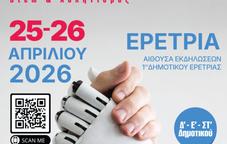 Η εκδήλωση θα πραγματοποιηθεί στις 25 και 26 Απριλίου 2026, στην αίθουσα εκδηλώσεων του 1ου Δημοτικού Σχολείου Ερέτριας.
