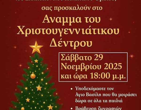 Φωταγώγηση Χριστουγεννιάτικου δέντρου στην κεντρική πλατεία του χωριού, το Σάββατο 29 Νοεμβρίου 2025 στις 18:00 μ.μ.