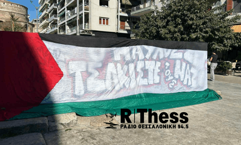 Θεσσαλονίκη: Παλαιστινιακή σημαία στην Καμάρα (PHOTO)