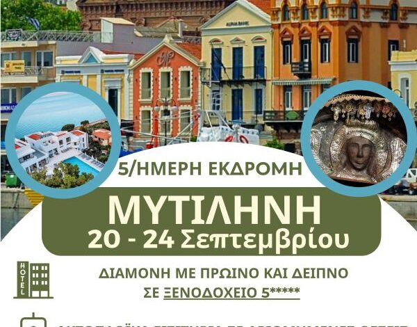 Hermes Tours: 5ήμερη προσκυνηματική εκδρομή στη Μυτιλήνη – 20 έως 24 Σεπτεμβρίου – Κλείσε άμεσα θέση!