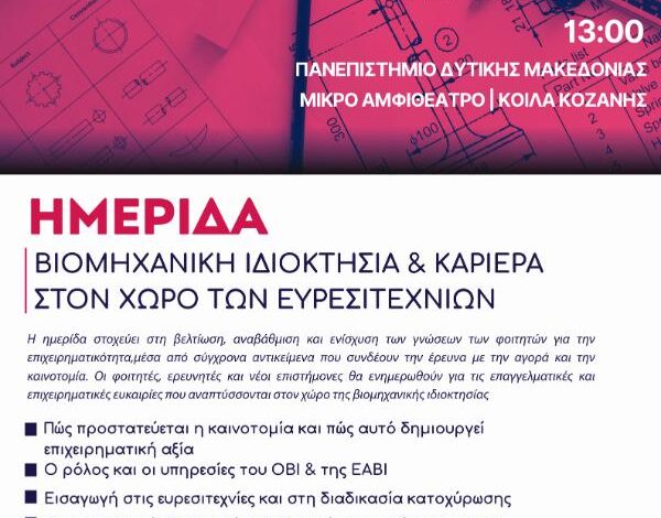 Ημερίδα για τη Βιομηχανική Ιδιοκτησία και την Καριέρα στον χώρο των Ευρεσιτεχνιών στο Πανεπιστήμιο Δυτικής Μακεδονίας