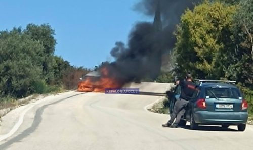 Συγκεκριμένα, στην επαρχιακή οδό Σάμη – Αργοστόλι, στην περιοχή της Λανούς, όταν ένα αυτοκίνητο τυλίχθηκε ξαφνικά στις φλόγες και μέσα σε λίγα λεπτά μετατράπηκε σε μια άμορφη, καμένη μάζα σιδερικών.