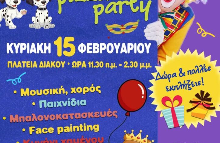 Ο Φιλανθρωπικός Σύλλογος “Συν στον Άνθρωπο” διοργανώνει αποκριάτικο παιδικό pizza party την Κυριακή 15 Φεβρουαρίου στην πλατεία Διάκου.