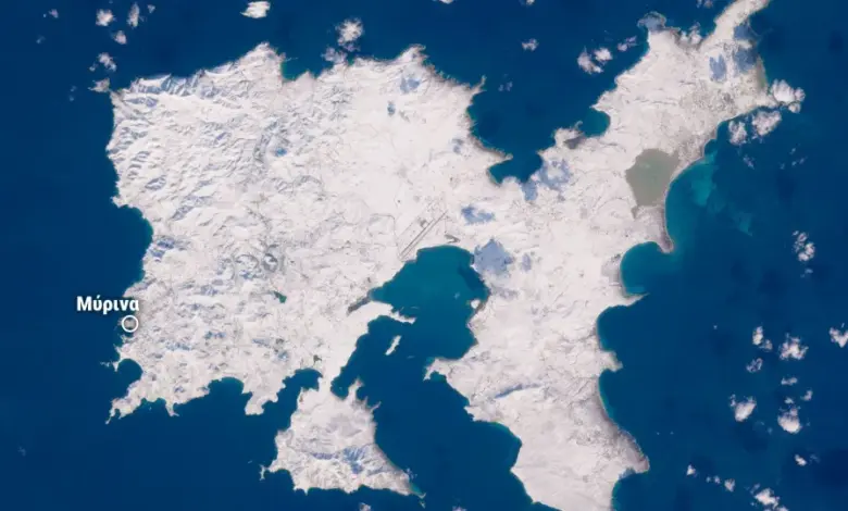 Λήμνος: Στα λευκά όλο το νησί την Πρωτοχρονιά – Εντυπωσιακή δορυφορική εικόνα