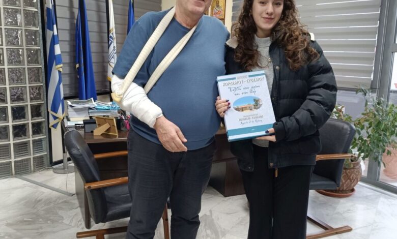 Ο δήμαρχος δέχτηκε την Αναστασία Βελαώρα στο γραφείο του και τη συνεχάρη για την επιτυχία της. Της χάρισε και ένα λεύκωμα του Δήμου Κορδελιού- Ευόσμου, προκειμένου να το έχει μαζί της στην Ιταλία και να προβάλλει τον τόπο της.
