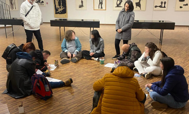 Την έναρξη των δράσεων σηματοδότησε η χθεσινή επίσκεψη τμημάτων του Ωνασείου Λυκείου, τα οποία ξεναγήθηκαν στον χώρο της έκθεσης από την κα Ματίνα Τσικριτζή – Μόμτσιου. Οι μαθητές είχαν την ευκαιρία να γνωρίσουν το έργο και την ιδιαίτερη τεχνική της καλλιτέχνιδας, προσεγγίζοντας παράλληλα το κοινωνικό και ιστορικό πλαίσιο της δημιουργίας της.