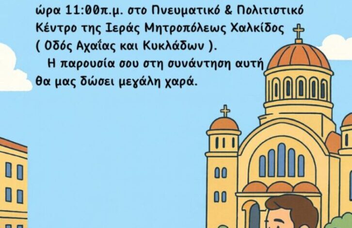 Η Ιερά Μητρόπολη Χαλκίδος και ο Σεβασμιώτατος Μητροπολίτης μας κ. Χρυσόστομος, με την ευκαιρία των εορτών του Αγίου Δωδεκαημέρου, προσκαλεί τους νεοεισαχθέντες επιτυχόντες φοιτητές Σχολών της Τριτοβάθμιας Εκπαίδευσης (για το ακαδημαϊκό έτος 2025-2026), τη Δευτέρα 29 Δεκεμβρίου 2025 και ώρα 11π.μ., στο Πολιτιστικό-Πνευματικό Κέντρο της Ιεράς Μητροπόλεως Χαλκίδος (οδ.: Αχαΐας & Κυκλάδων), ώστε να τους εκφρασθούν συγχαρητήρια και η στήριξη της τοπικής μας Εκκλησίας στη σταδιοδρομία τους.
