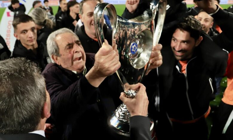Ο ιστορικός πρόεδρος του ΟΦΗ, ο Γιάννης Παπαματθαιάκης, μετά από 39 χρόνια είχε την ευλογία να σηκώσει και πάλι την κούπα του Κυπέλλου Ελλάδας.