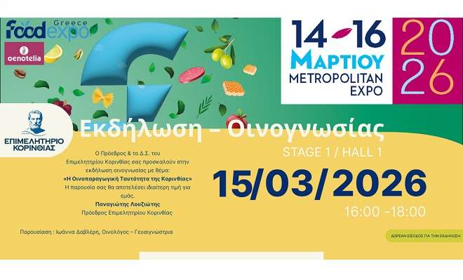 Οινογνωσία από το Επιμελητήριο Κορινθίας στην FOOD EXPO – OENOTELIA 2026