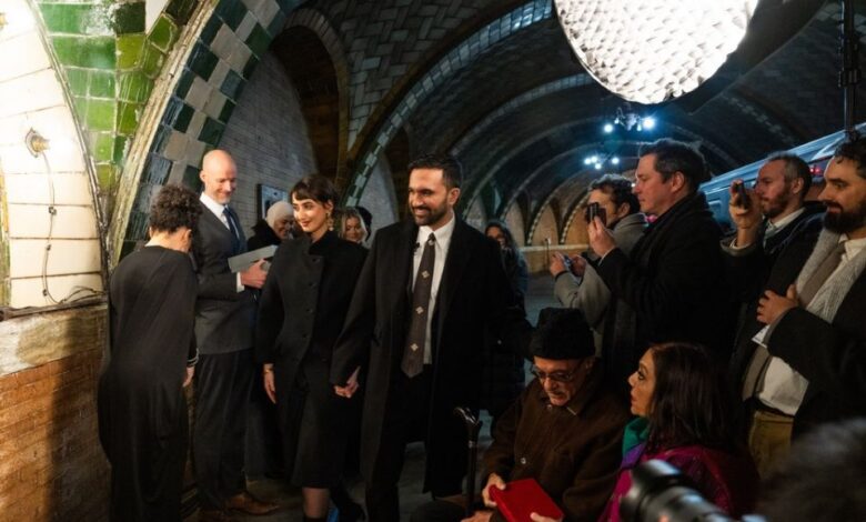 Ο Μαμντάνι ορκίστηκε στην πλατφόρμα του παλιού σταθμού του μετρό του Δημαρχείου, κάτω από το City Hall Park στο Μανχάταν.