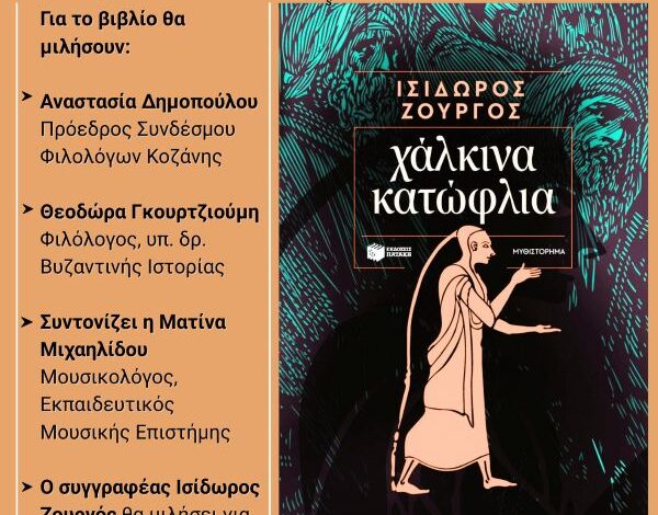 Παρουσίαση βιβλίου ‘Χάλκινα Κατώφλια’ του Ισίδωρος Ζουργός στην Κοβεντάρειο Δημοτική Βιβλιοθήκη