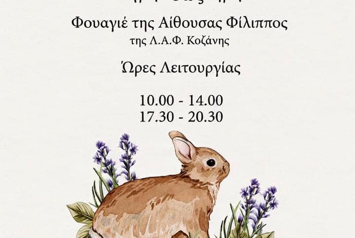 Σας περιμένουμε στο φουαγιέ της αίθουσας «ΦΙΛΙΠΠΟΣ» στο κτίριο της ΛΑΦ Κοζάνης (Παύλου Μελά) από 1 Απριλίου έως και Μεγάλη Πέμπτη 9 Απριλίου