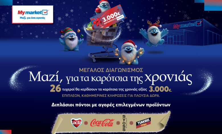 Η πιο φωτεινή εποχή του χρόνου αποκτά ακόμη περισσότερη λάμψη χάρη στον μεγάλο γιορτινό διαγωνισμό των My market «Μαζί, για τα καρότσια της χρονιάς», που μοιράζει πλούσια δώρα συνολικής αξίας 85.200€ και υπόσχεται να προσθέσει σε κάθε σπίτι, λίγη ακόμα από τη μαγεία των γιορτών!