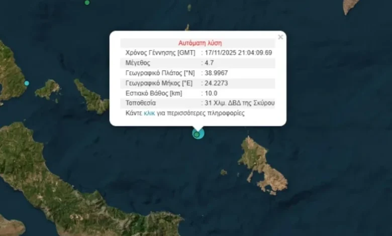 Σεισμός 4,6 Ρίχτερ στη Σκύρο, αισθητός στην Εύβοια
