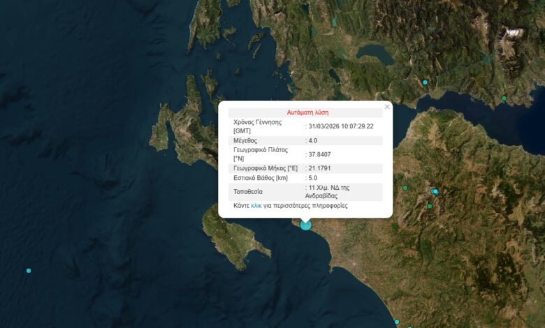 Σεισμός στην Ανδραβίδα αισθητός και την Αιτωλοακαρνανία