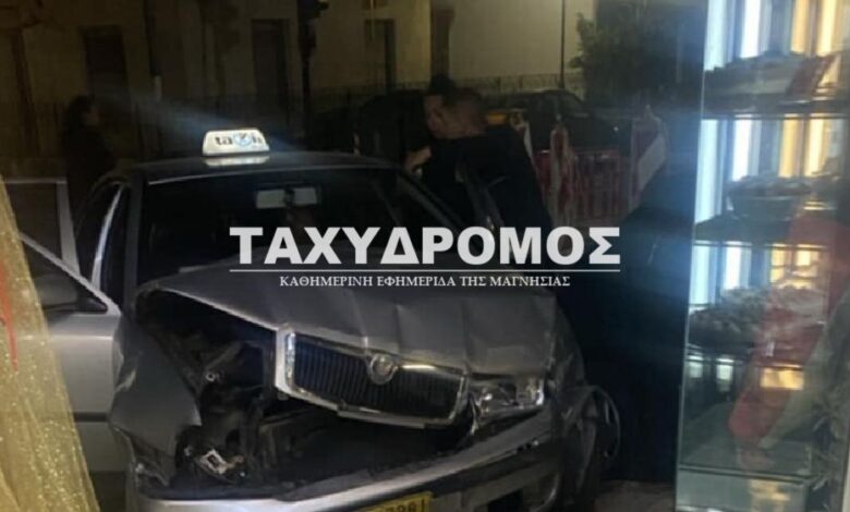Αλλά και το ταξί εξετράπη της πορείας του, ανέβηκε στο πεζοδρόμιο και σταμάτησε σε απόσταση αναπνοής από την είσοδο του ζαχαροπλαστείου.