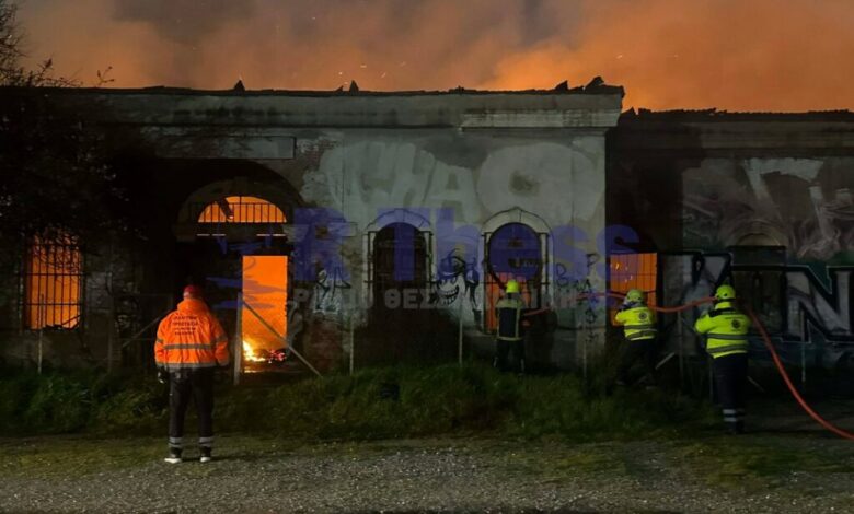 Φωτιά σε εγκαταλελειμμένο κτίριο μέσα στο πρώην στρατόπεδο Κόδρα στην Καλαμαριά στην Ανατολική Θεσσαλονίκη