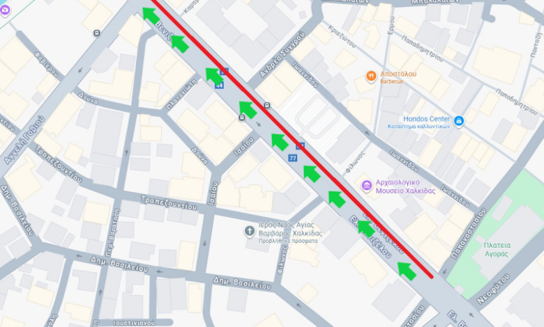 - Τα οχήματα που εισέρχονται στη Λεωφόρο Ελ. Βενιζέλου, μέσω των οδών Παπαναστασίου, Ισαίου, Πλατανιώτη και Βαρατάση θα μπορούν να κινηθούν μόνο με κατεύθυνση προς την παραλία Χαλκίδας.