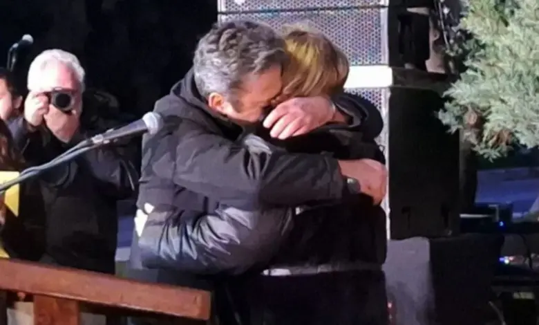 Κλείνοντας, η Γιάννα Βούλγαρη απευθύνθηκε στον Παύλο Ασλανίδη, πρόεδρο του Συλλόγου Συγγενών Θυμάτων των Τεμπών. «Κύριε Ασλανίδη, δεν έχει τύχει να σας γνωρίσω από κοντά. Εύχομαι όμως στο μέλλον να σας γνωρίσω» είπε, με τον κ. Ασλανίδη να την πλησιάζει στο βήμα και να την αγκαλιάζει. Σε ανθρώπινο επίπεδο η στιγμή ήταν συγκινητική, σε συμβολικό, είναι η στιγμή που οι οικογένειες των μηχανοδηγών «αναγνωρίζονται» από τον Σύλλογο ως μέλη τους.