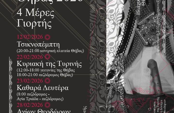 22/02/2026 – ΚΥΡΙΑΚΗ ΤΗΣ ΤΥΡΙΝΗΣ (12:00 – 18:00 Γειτονιές της Θήβας , 18:00 – 21:00 Πεζόδρομος Θήβας)